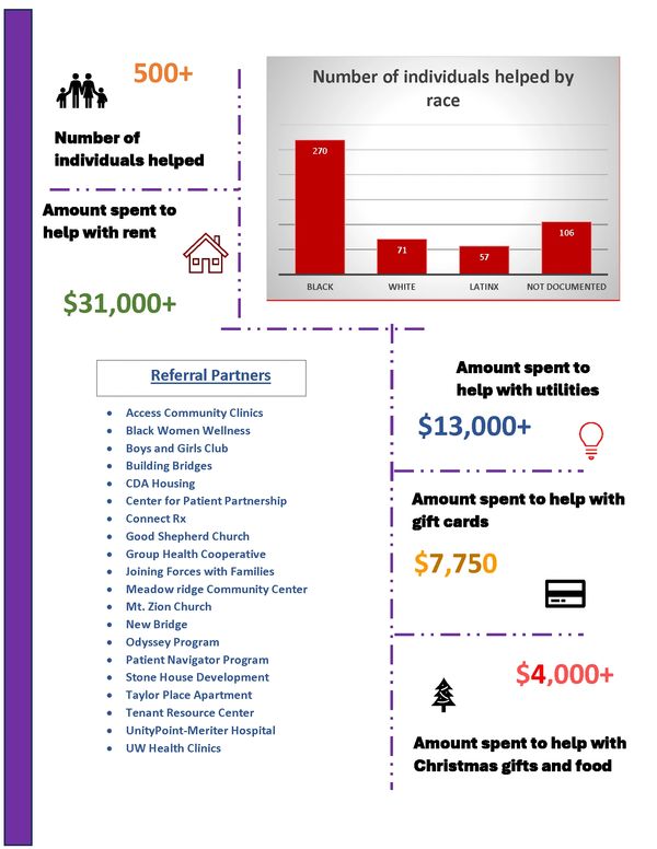 After years as a certified nursing assistant and community organizer I founded MHP in 2016 to provide wraparound health support to my neighbors. I run MHP on a part-time basis with support from a few dedicated volunteers. The COVID-19 pandemic unveiled a growing need to expand MHP’s services, both geographically and strategically. Over the past 14 months I have been providing hands-on supports to residents of Meadowood and beyond like: delivering critical supplies like face masks, diapers and food; educating people on COVID; negotiating with landlords to prevent evictions; and even running a COVID-19 vaccine clinic in the parking lot of a local church where over 70 primarily BIPOC were vaccinated. The demand is huge and the need to focus on helping my community recover from the many damaging effects of the pandemic is critical. I hope to use funding from this grant opportunity to help scale-up MHP’s efforts and provide additional services to support COVID-19 recovery and build resilience for Madison’s BIPOC and low-income community in and beyond the Meadowood Neighborhood by recruiting, training and supporting others to serve as Community Health Workers (CHW).